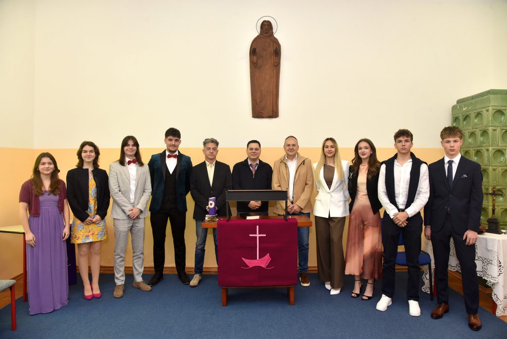 Predsjednik crkvene općine Božidar-Andrija Lukša čestitao je konfirmandima i uputio riječi zahvalnosti roditeljima, kumovima, vjeroučiteljima i svima koji su svojim primjerom, molitvom i prisutnošću pratili konfirmande na njihovom putu vjere. Za uspomenu i ohrabrenje, konfirmandima je uručena Evangelička pjesmarica koja nas prati u svim trenucima života – od molitve do radosti – i koja zauzima posebno mjesto u evangeličkoj liturgiji i duhovnosti naše crkve. Uz nju su dobili i Lutherovu ružu, simbol reformacije, u kojoj se križ nalazi u srcu, srce u bijeloj ruži, ruža u nebeskom plavetnilu – sve okruženo zlatnim krugom vječnosti. Simbolika je jasna: vjera koja se oslanja na križ donosi mir, radost i život vječni.